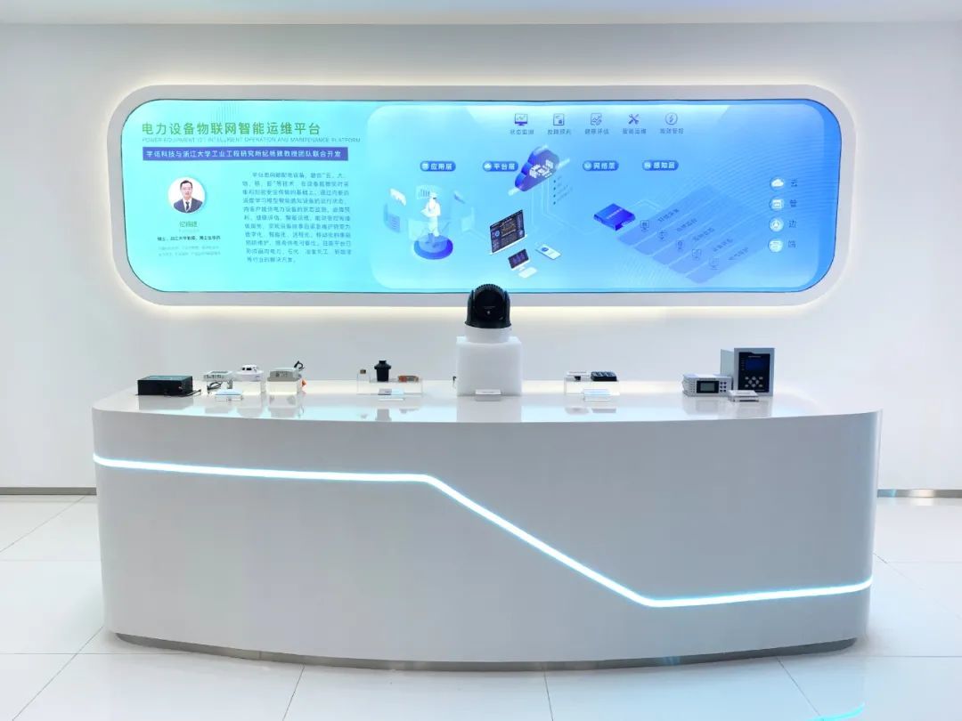 展廳核心區域展示了宇諾科技與浙江大學紀楊建教授團隊聯合研發的電力設備物聯網智能運維平臺的介紹說明,參觀者可以在展廳大屏上操作演示系統,實地感受平臺的核心功能。