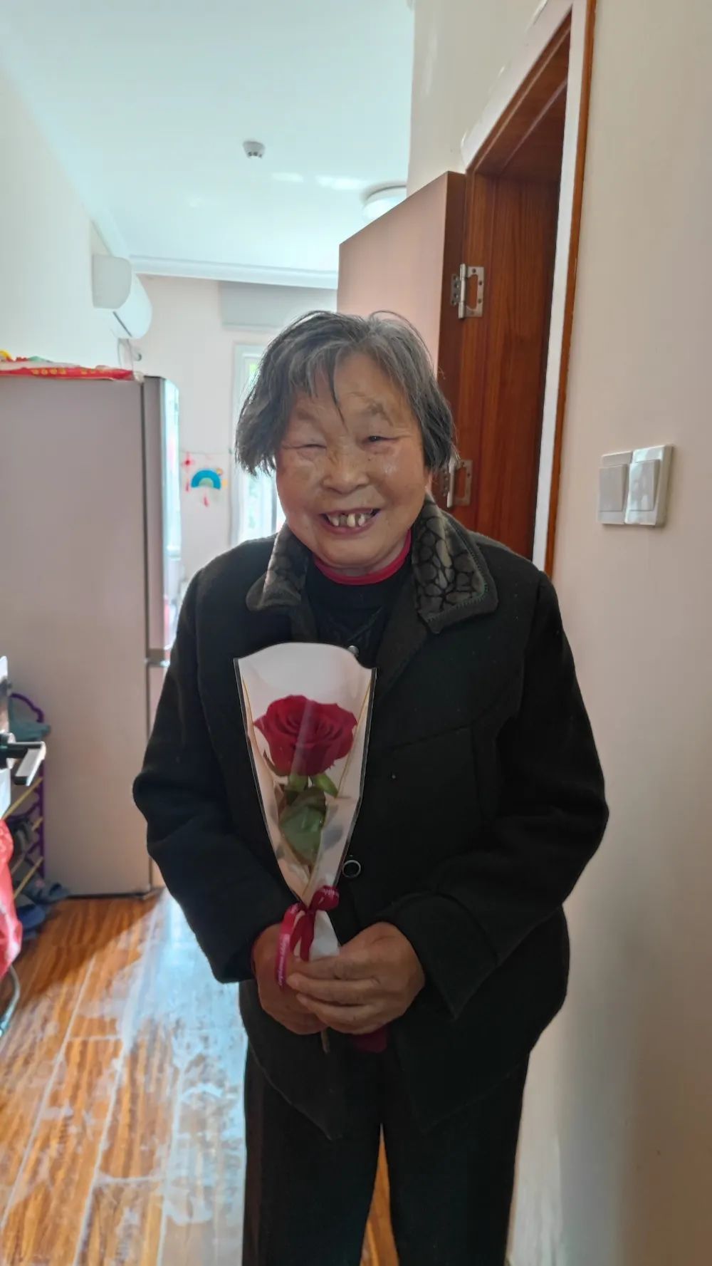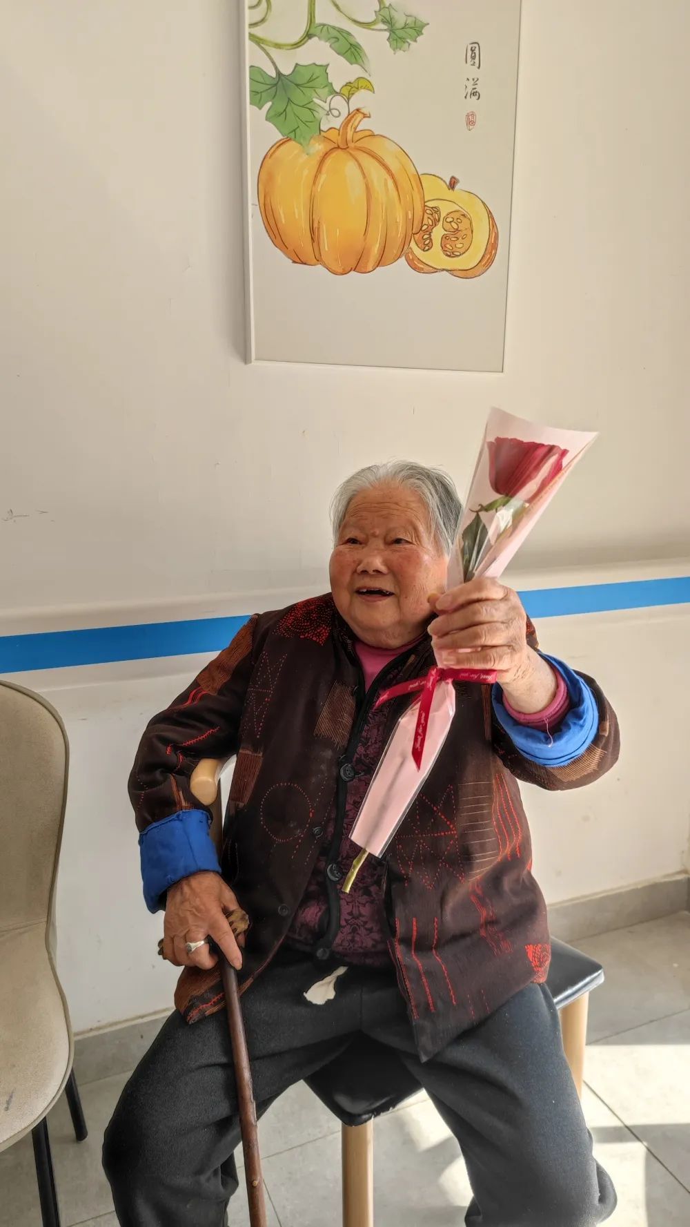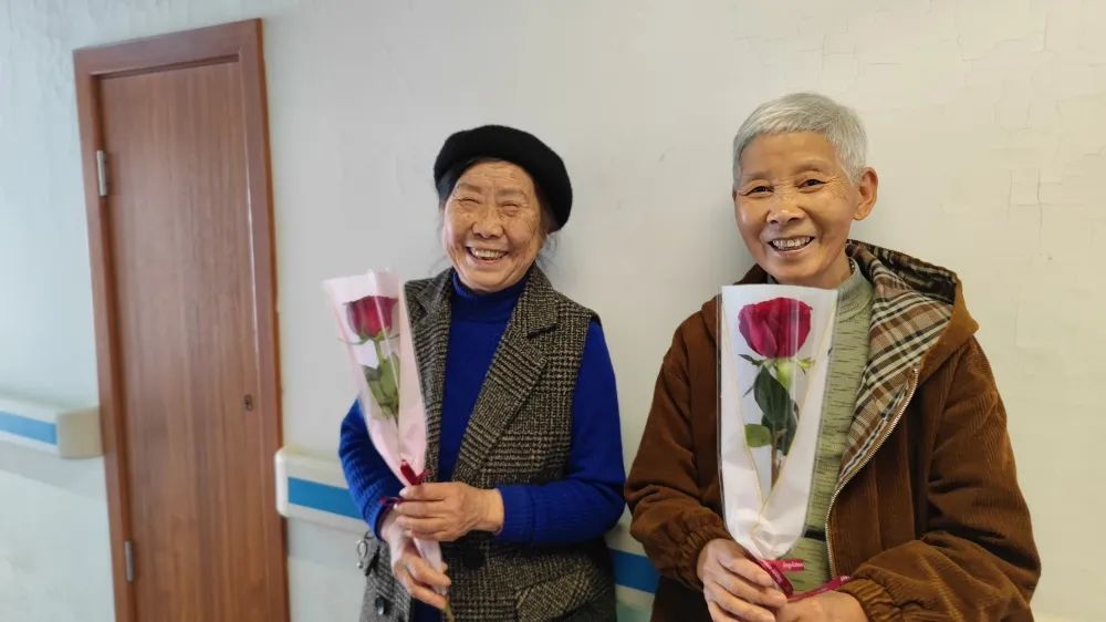 宇諾科技黨員志愿者一行為女性長者們送上了玫瑰花束,奶奶們收到了花束,每個人臉上都洋溢著如花般的笑容,歲月的痕跡不是年輪是奶奶們的芳華夢。